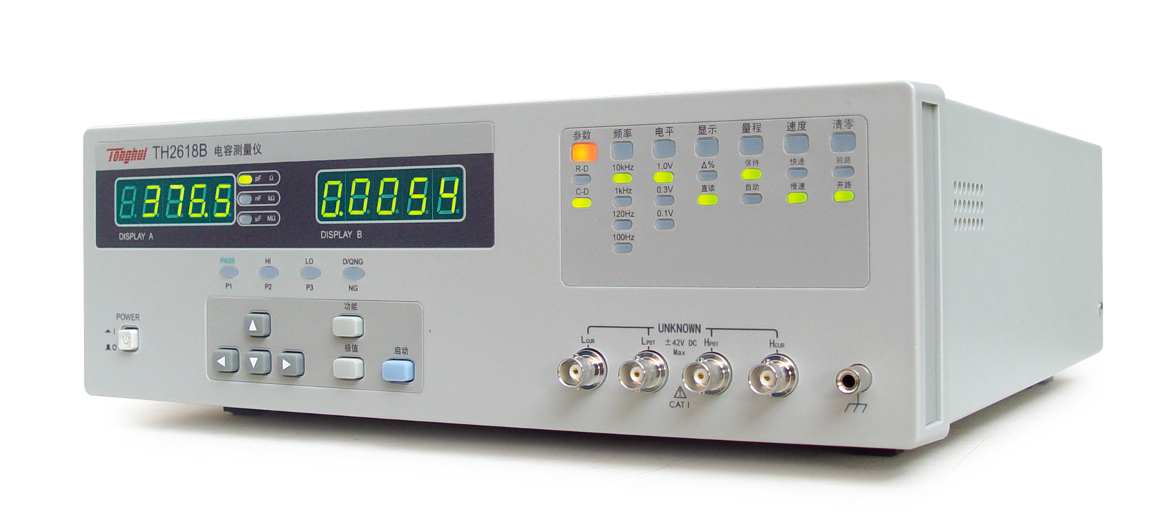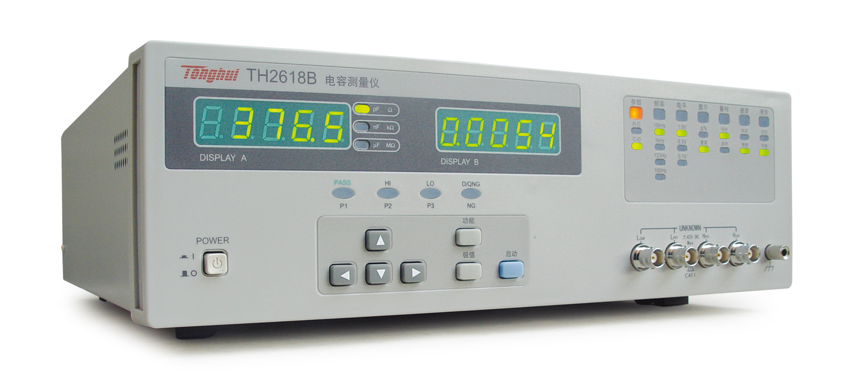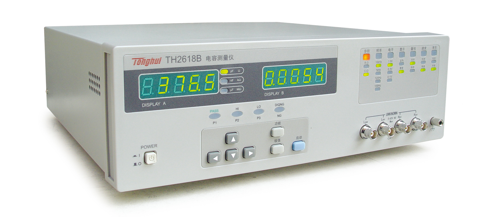 ■?TH2618B是一種精度高、測試范圍寬、操作簡便、功能完善的電容測量儀。該產品可提供至10kHz的典型測試頻率及四檔分選功能,尤其適用于生產線快速測量,該產品具有強有力的抗沖擊保護能力,解決了長期以來電容測量儀沖擊保護能力差這一困擾使用者的頑癥。完善的HANDLER接口可使之方便地使用于元件自動分選系統(tǒng)。