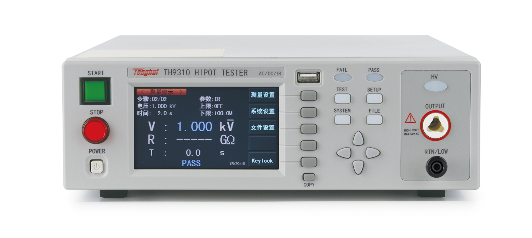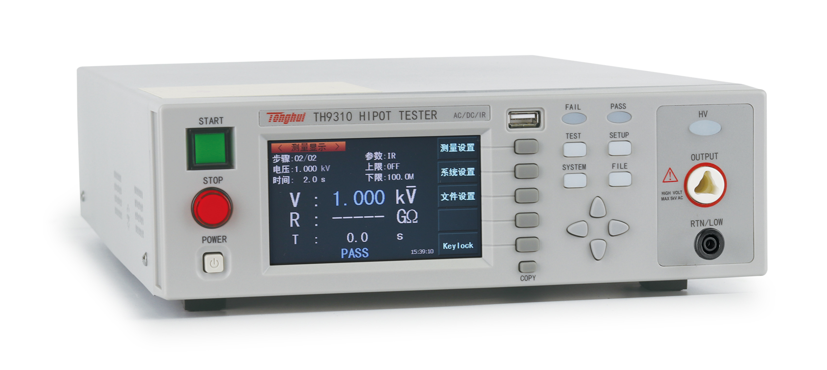 ■?TH9310交直流耐壓絕緣測試儀是一款小功率經濟型智能安規測試儀器。體積小、重量輕、外形美觀、操作簡便。TH9320產品可廣泛應用于家用電器、變壓器、電氣設備、元器件的安全性能檢查。