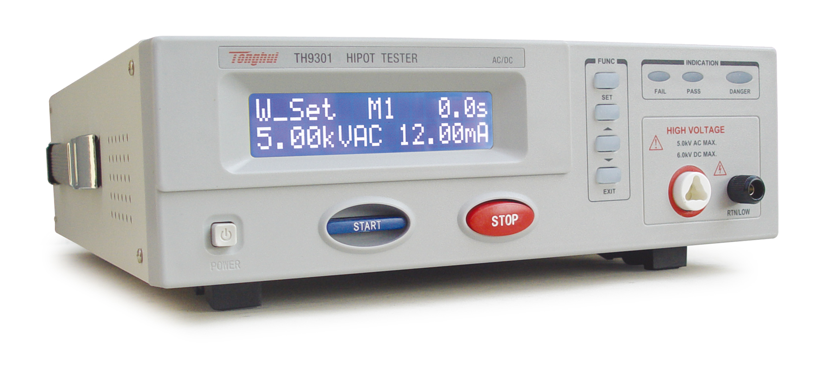 ■?TH9301系列交直流耐壓絕緣測試儀是一款小功率經濟型智能安規測試儀器。體積小、重量輕、外形美觀、操作 簡便。
