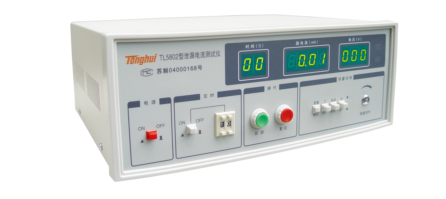 ■?TL5802泄漏電流測試儀是用于測量電器的工作電源(或其它電源)通過絕緣阻抗或分布參數阻抗產生的與工作無關的泄露電流。其輸入阻抗模擬人體阻抗,產品使用與家用電器和電機,電子儀器等其他電器產品的安全測試要求,也是實驗室,計量監督部門不可缺少的檢測設備。本產品滿足GB4706.1-2005,IEC60335.1-2004等國內外安規標準測試,符合JJG843-2007安規計量檢定規程要求。