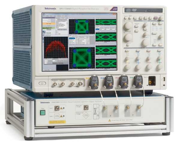 不提供示波器。軟件兼容許多示波器。在訂貨時檢查兼容能力。最低要求包括:每條通道>10?GS/s,每條通道>2.5?GHz帶寬,4通道,LAN連接。