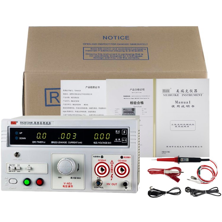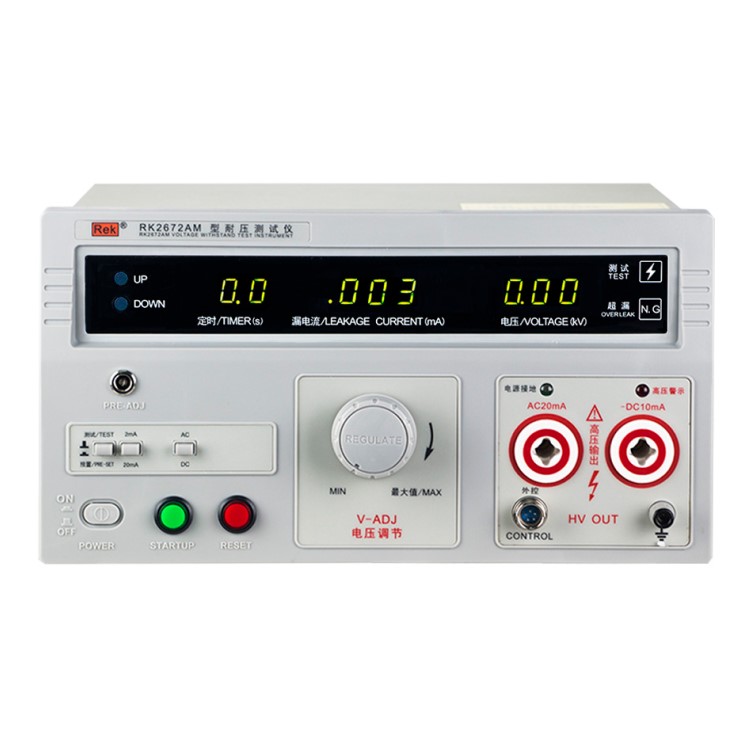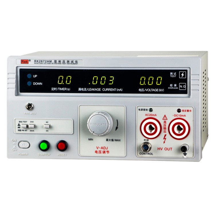 美瑞克RK2672系列耐壓測試儀是測量耐壓強度的儀器,可以直觀、準(zhǔn)確、快速地測試各種被測對象的擊穿電壓、漏電流等電氣安全性能指標(biāo),并可以作為高壓源用來測試元器件和整機(jī)性能。