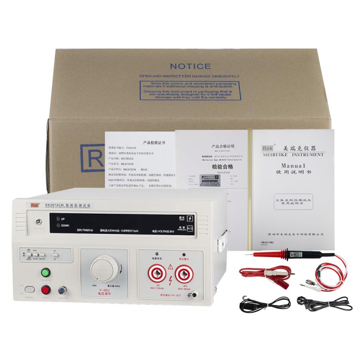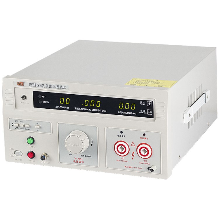 美瑞克RK2672系列耐壓測試儀是測量耐壓強度的儀器,可以直觀、準確、快速地測試各種被測對象的擊穿電壓、漏電流等電氣安全性能指標,并可以作為高壓源用來測試元器件和整機性能。