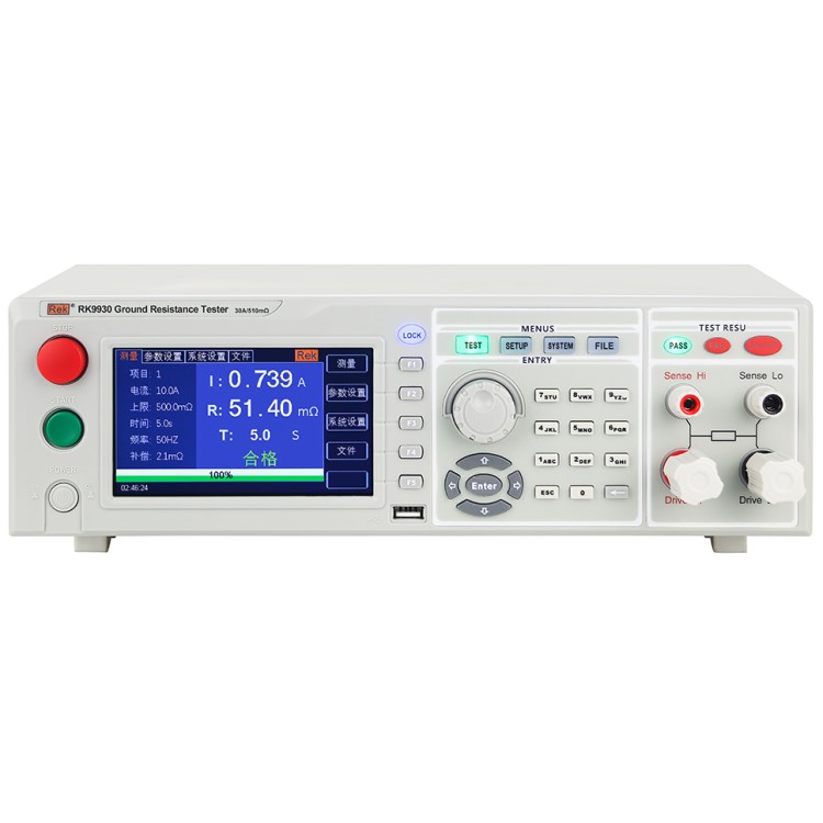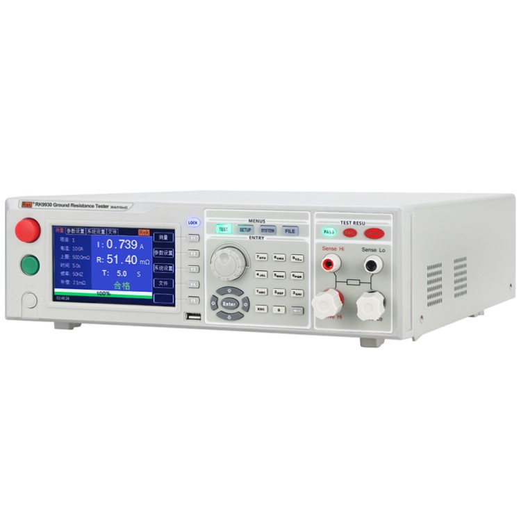 RK9930系列程控接地電阻測試儀均采用高速M(fèi)CU和大規(guī)模數(shù)字電路設(shè)計(jì)的高性能的安規(guī)測試儀,輸出電流采用硬件反饋、高速M(fèi)CU控制技術(shù),使輸出電流穩(wěn)定可靠。輸出電流采用DDS+功放驅(qū)動(dòng)輸出,輸出波形純凈失真小。能實(shí)時(shí)顯示電流值和電阻值,并具有軟體校準(zhǔn)功能,配備PLC接口、RS232C、RS485、USB device、USB Host接口,可方便與計(jì)算機(jī)或PLC組成綜合測試系統(tǒng)。能夠快速、準(zhǔn)確地對(duì)家用電器、儀器儀表、照明電器、電動(dòng)電熱器具、計(jì)算機(jī)、信息類整機(jī)進(jìn)行安規(guī)綜合測量。本儀器符合IEC60335-1、GB4706.1、UL60335-1家用和類似用途電器的安全第一部分:通用要求UL60950、GB4943、IEC60950信息技術(shù)設(shè)備UL60065、GB8898IEC60065音頻、視頻及相似電子機(jī)械安全的要求IEC61010-1、GB4793.1測量、控制和實(shí)驗(yàn)室用電氣設(shè)備的安全要求第1 部分:通用要求。
