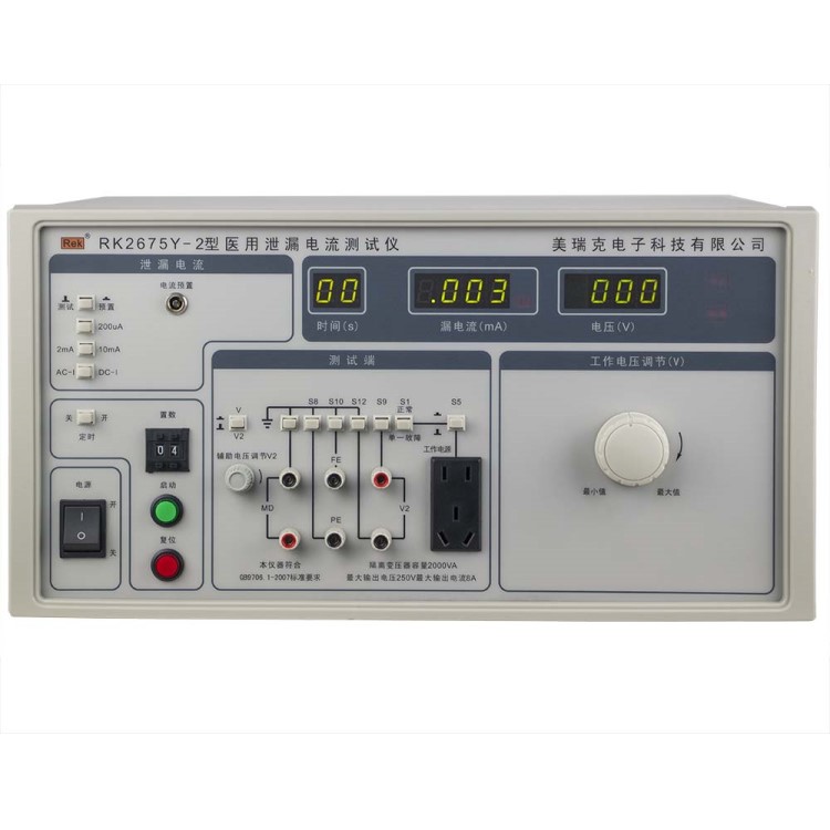 RK2675Y系列醫(yī)用泄漏電流測試儀用于測量醫(yī)用電氣設(shè)備的連續(xù)漏電流和患者輔助電流的檢測試驗(yàn)設(shè)備。