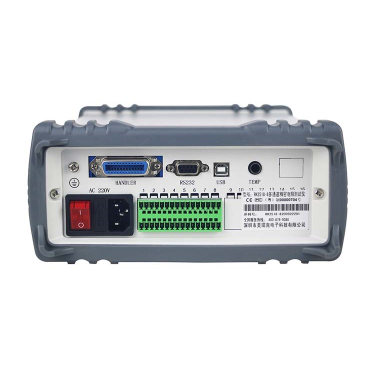 RK2518多路電阻測(cè)試儀采用當(dāng)前主流的32bits CPU和高密度SMD貼裝工藝、24位色分辨率480*272的真彩IPS LCD液晶屏顯示以及上下左右功能鍵,界面清爽、操作便捷;其使用于繼電器接觸電阻、接插件接插電阻、導(dǎo)線電阻、印制板線路及焊孔電阻等;溫度補(bǔ)償能免除環(huán)境溫度對(duì)測(cè)試工作的影響;RK2518系列提供了多種接口功能,可方便的與PC進(jìn)行數(shù)據(jù)通訊和遠(yuǎn)程控制。